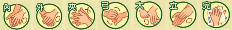 新光醫院急診醫學科主任張志華醫師說明洗手步驟「內、外、夾、弓、大、立、完」張志華醫師表示,不要小看洗手這個動作,裡頭可以藏有很大的學問,建議每個步驟過程需要搓洗 40~ 60 秒,才是有效的洗手喔!「內是搓手心,外是搓手背,夾是搓指縫,弓是搓指背,大是搓大拇指和虎口,立是搓指尖,完是沖乾淨並擦乾。」